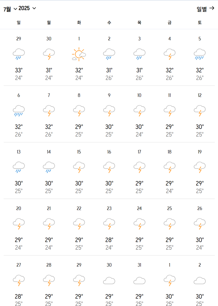 - 기온 : 평균 28~30℃